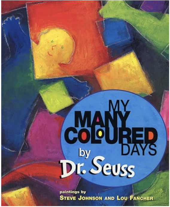 色と動物で「気分の日」を表現した、Dr. Seussによる詩的な絵本表紙。 Poetic picture book cover by Dr. Seuss illustrating “many colored days” with colors and animals.📘 書名:My Many Colored Days