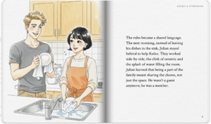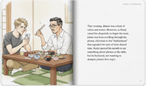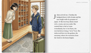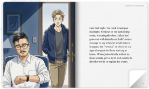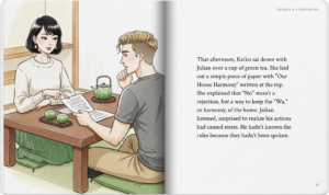 日本のホストファミリーが、留学生に対して家のルールや文化的な期待を優しく、かつしっかりと伝える方法を学んでいく過程を描いています。相互の尊重、時間管理、文化の違いを理解することが、調和のとれた家庭環境を作る鍵であるというテーマです。
