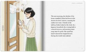 まずは冒頭1.5ページ分のサンプル動画をご覧ください。AIが生成した自然な英語のナレーションが付いています。表紙をクリックするとページが開き、音読が始まります。